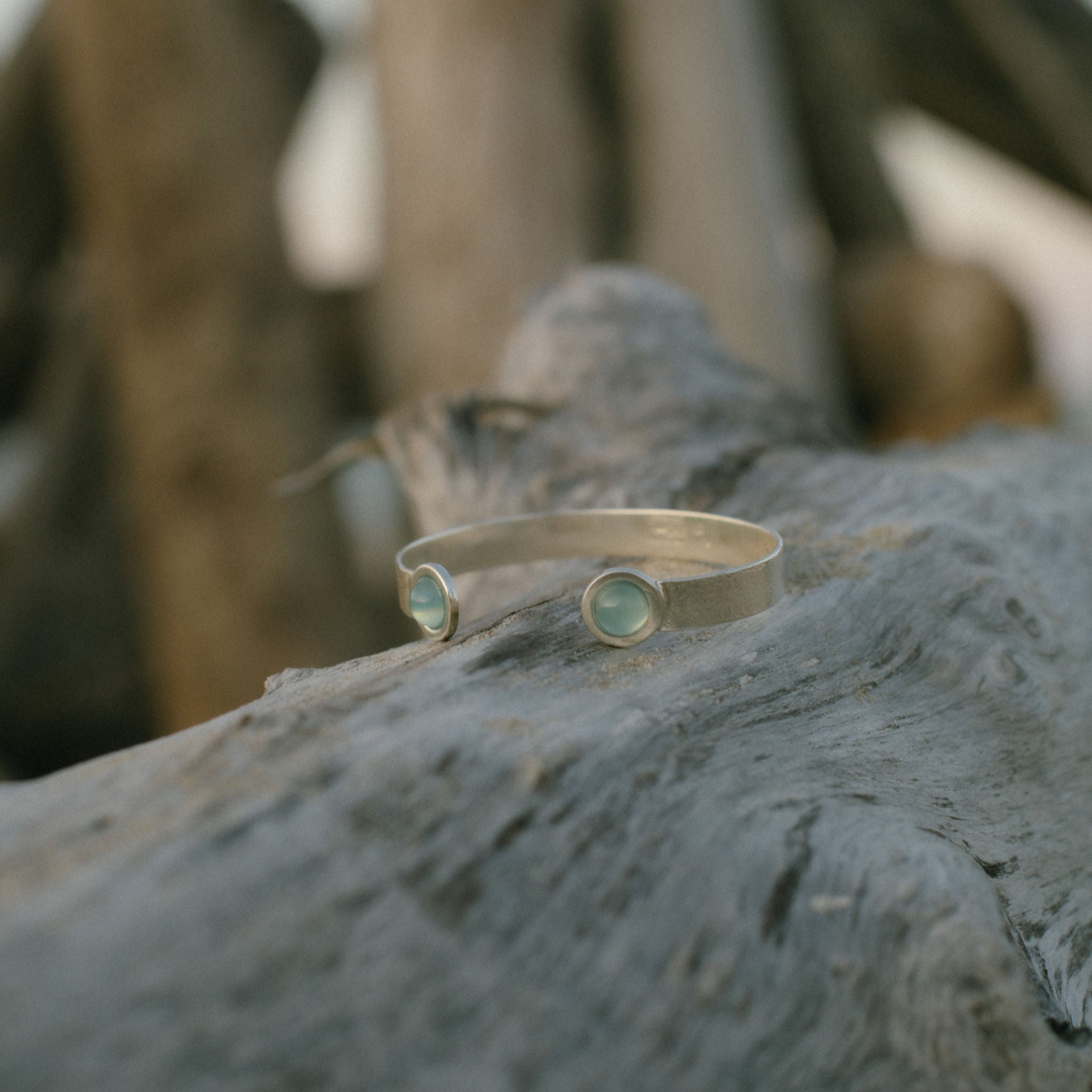 Poliertes Silber-Sklavenarmband mit Aquamarin