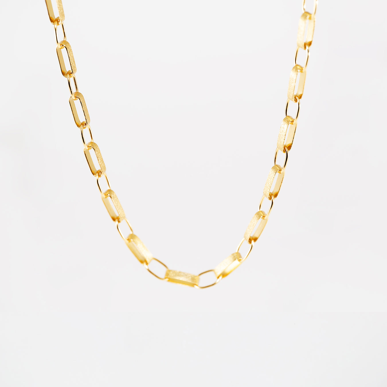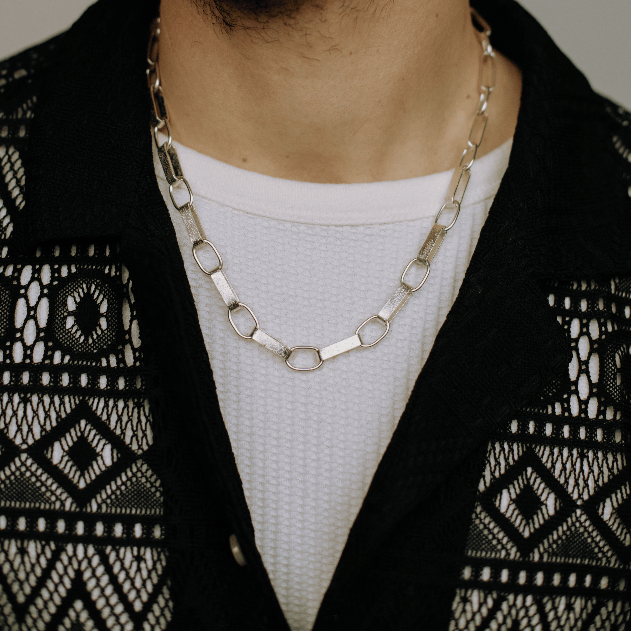 Diese Unisex-Halskette mit breiten Gliedern vereint maskuline und feminine Elemente.