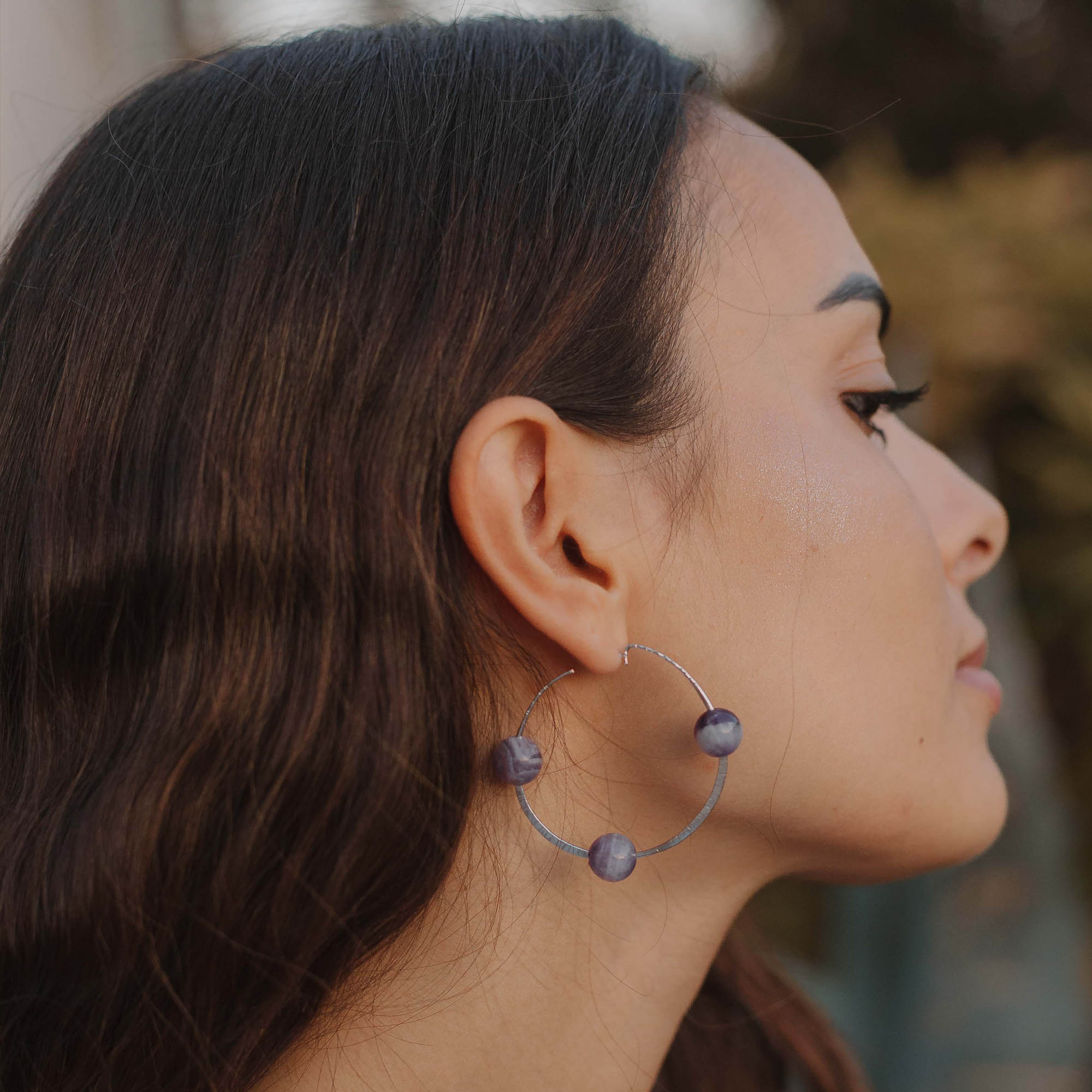 Silberne Ohrstecker mit Natursteinen. Drei Steine, ein einzigartiges Design, eine unvergleichliche Ausstrahlung. Lassen Sie sich vom zeitlosen Charme dieser Ohrringe verzaubern.