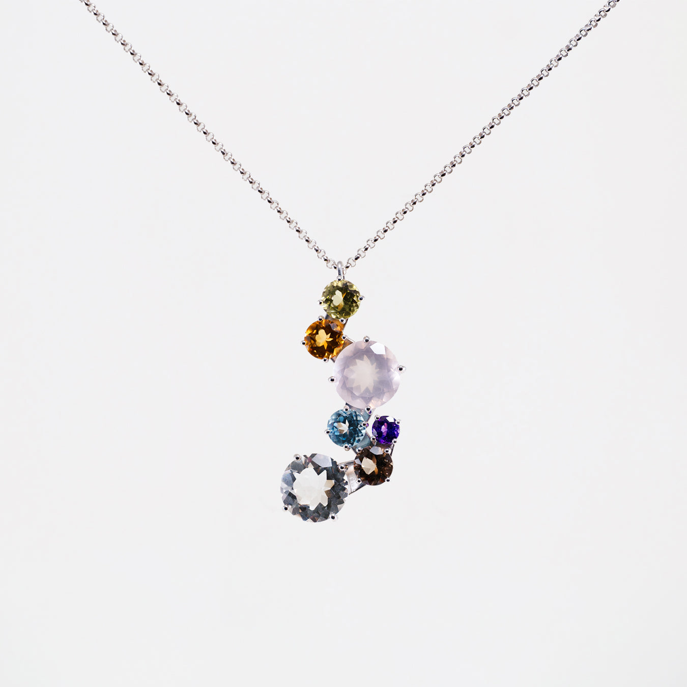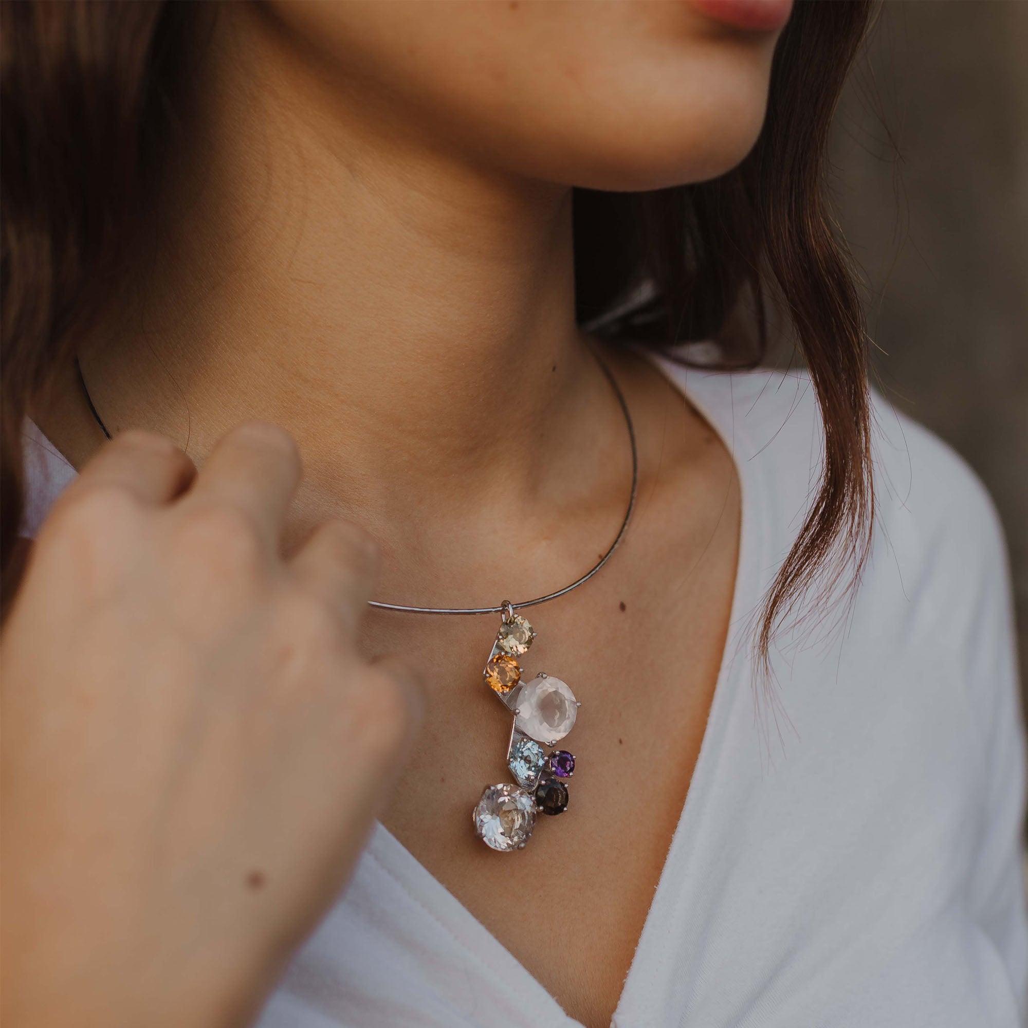 Der Iris-Anhänger besticht durch feinsten Naturquarz, der aufgrund seiner Brillanz und Farbintensität ausgewählt wurde.