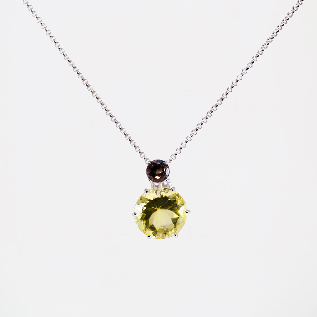 18 mm Zitronenquarz (gelb) und 8 mm Rauchquarz (braun)