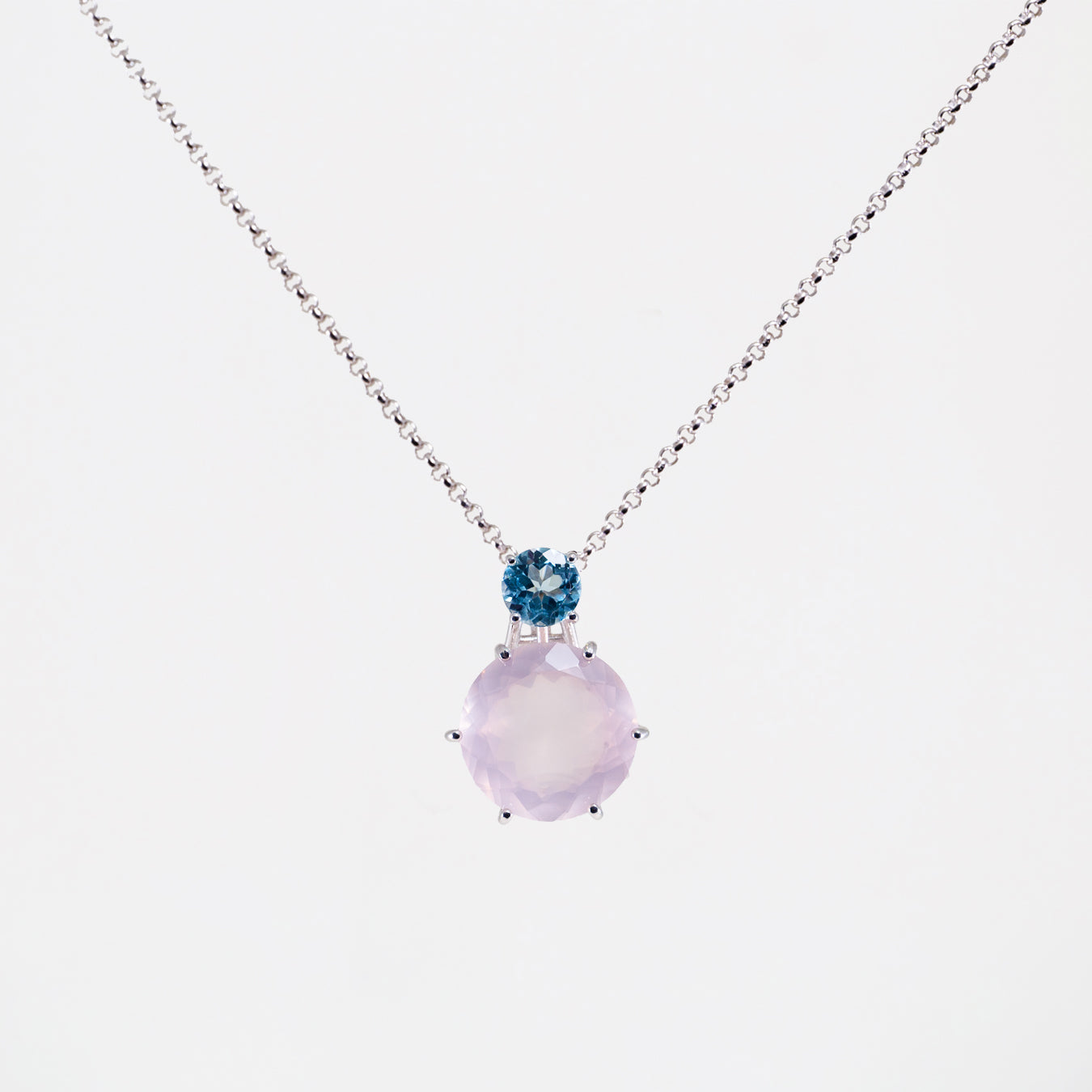 18 mm Rosenquarz (rosa) und 8 mm Topas (blau)