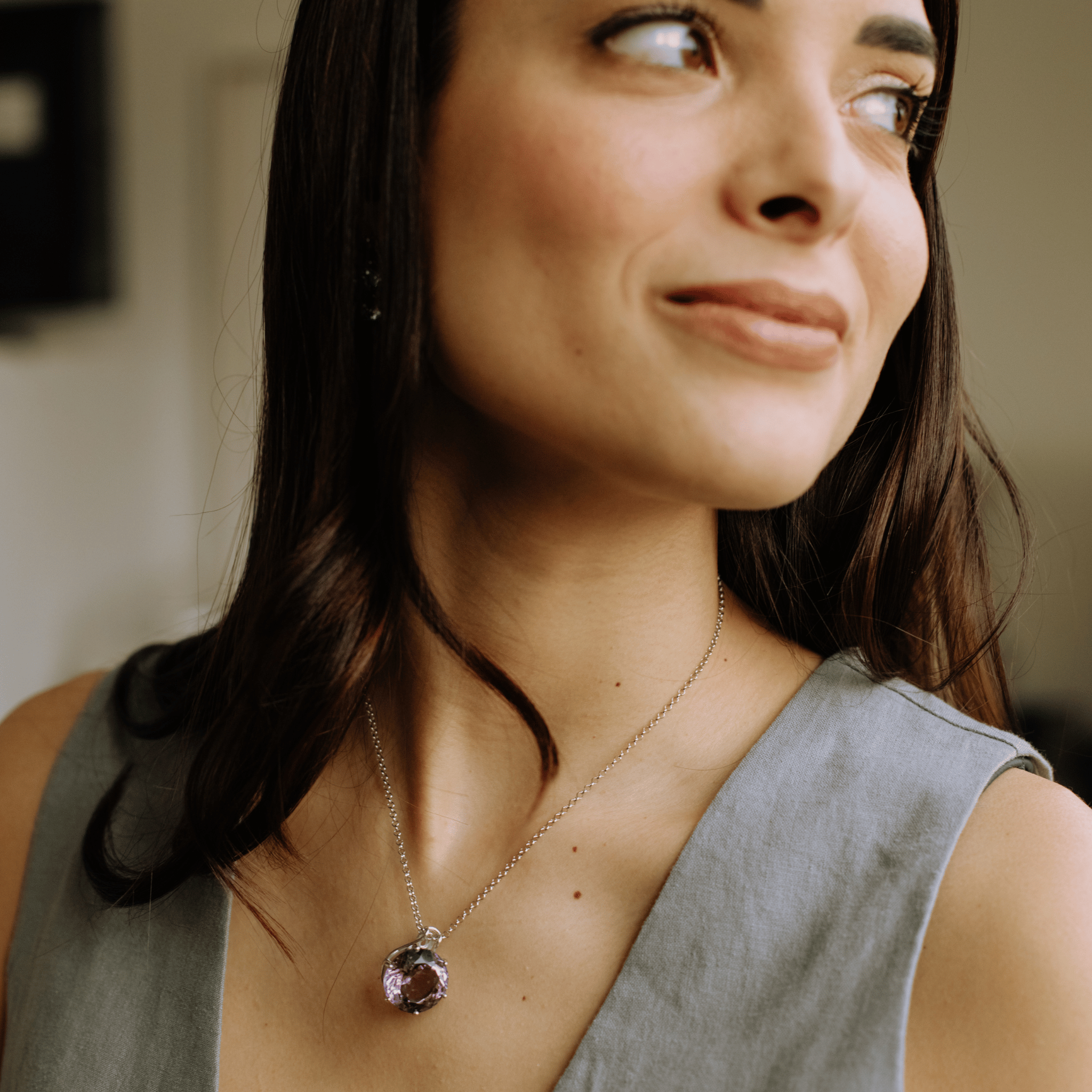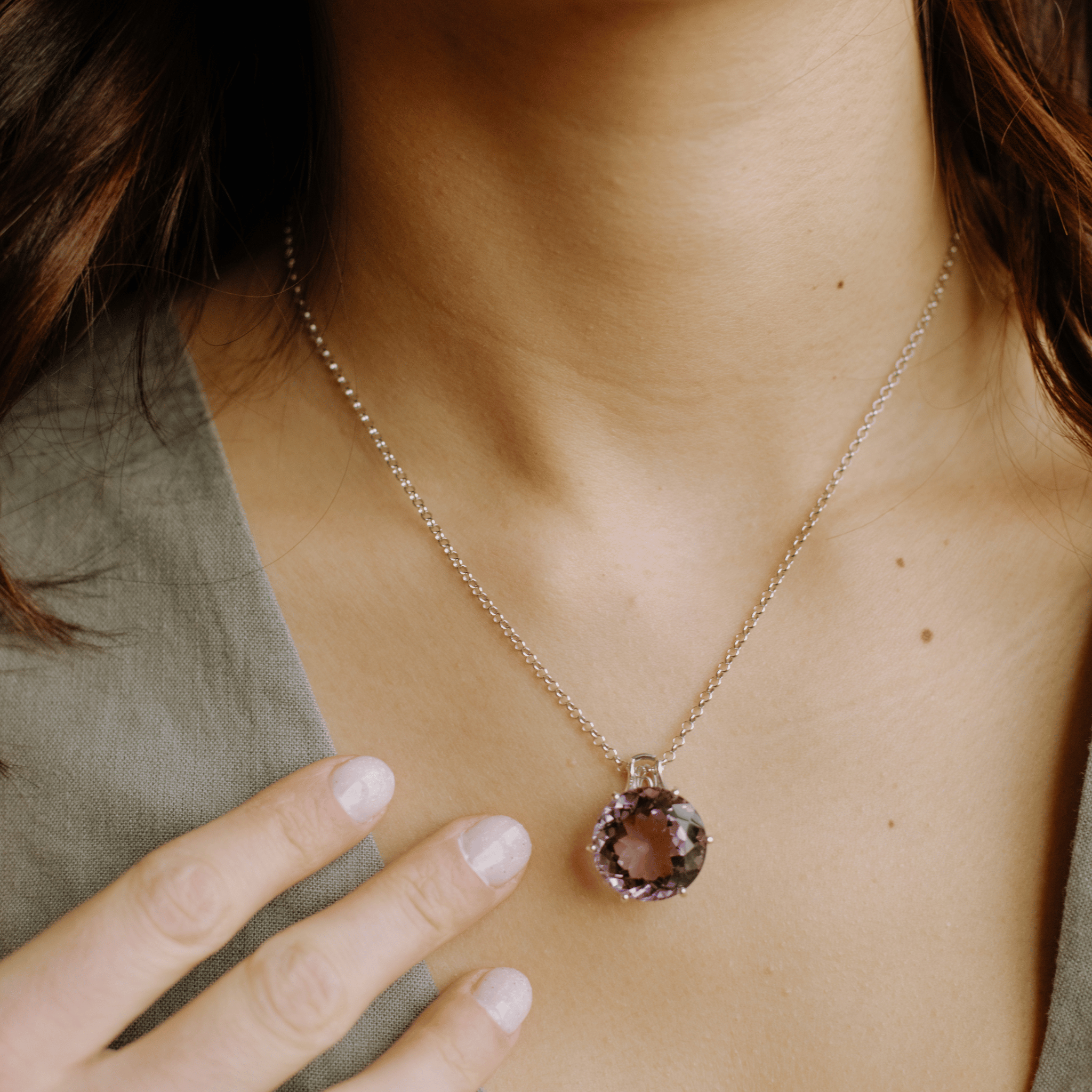 Die Iris-Anhänger brechen mit dem Klassizismus des < SolitärThemas, indem sie einen besonders großen Stein einsetzen. Wählen Sie Ihren Lieblingsstein aus einer Vielfalt an natürlichen Quarzen, die aufgrund ihrer Brillanz und Farbintensität ausgewählt wurden.